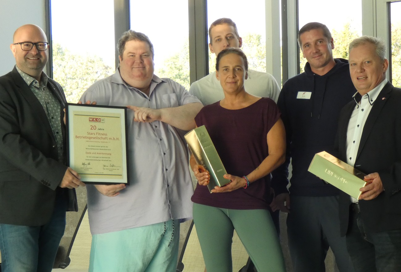 WKNÖ-Obmann Markus Fuchs sowie Wirtschaftsstadtrat Leopold Spitzbart würdigten damit den langjährigen Beitrag von Stars Fitness zur lokalen Wirtschaft, Gesundheit und Lebensqualität in Klosterneuburg.