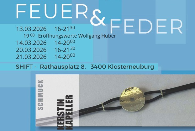 Die Brennerin Andrea Domanig, Goldschmiedin Kerstin Kapeller und Zeichnerin und Malerin Cornelia Caufmann begrüßen Sie mit neuen Arbeiten, die in ihren Klosterneuburger Ateliers entwickelt wurden.