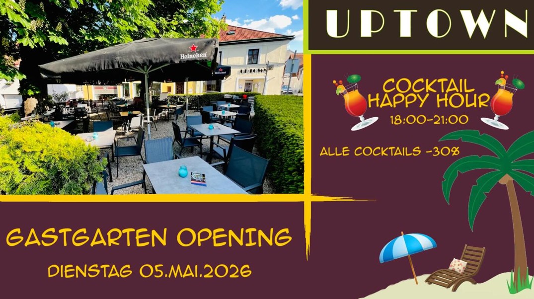 Ab Dienstag 5. Mai 2026 ist der Uptown-Gastgarten bei Schönwetter wieder geöffnet!