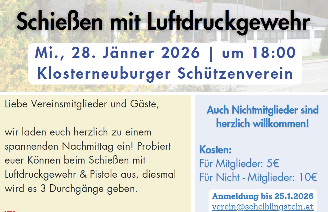 Der Verein „Wir Scheiblingsteiner“ lädt zu einem spannenden Nachmittag in den Klosterneuburger Schützenverein ein!